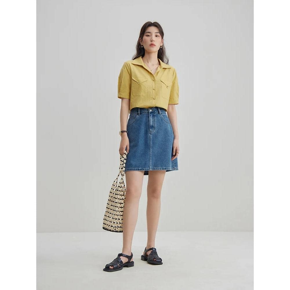 Upgrade your wardrobe with our Three Colors Simple Style High Waist Denim Skirt for Women and experience effortless style every day.