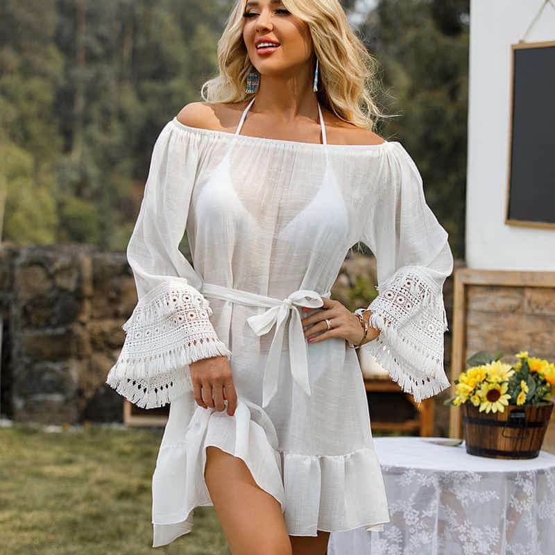 Step into summer with elegance and style with our Chic Net Yarn Tassel Beach Dress Cover-Up. Perfect for the fashion-forward woman, this cover-up combines comfort, style, and functionality, making it an essential for any beach day or poolside relaxation.