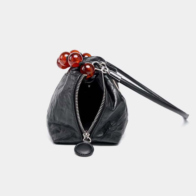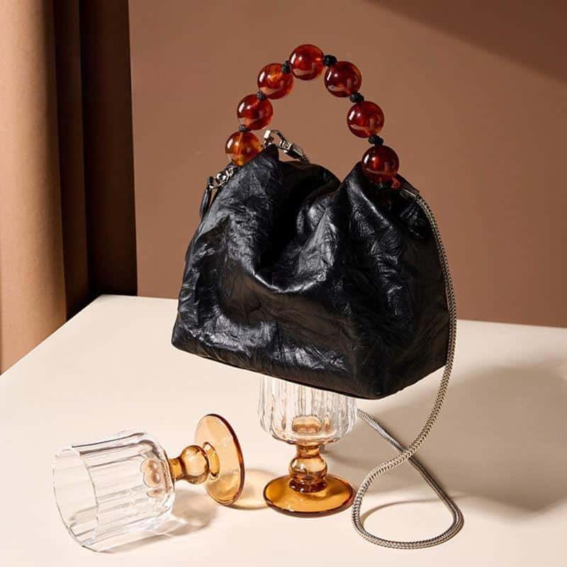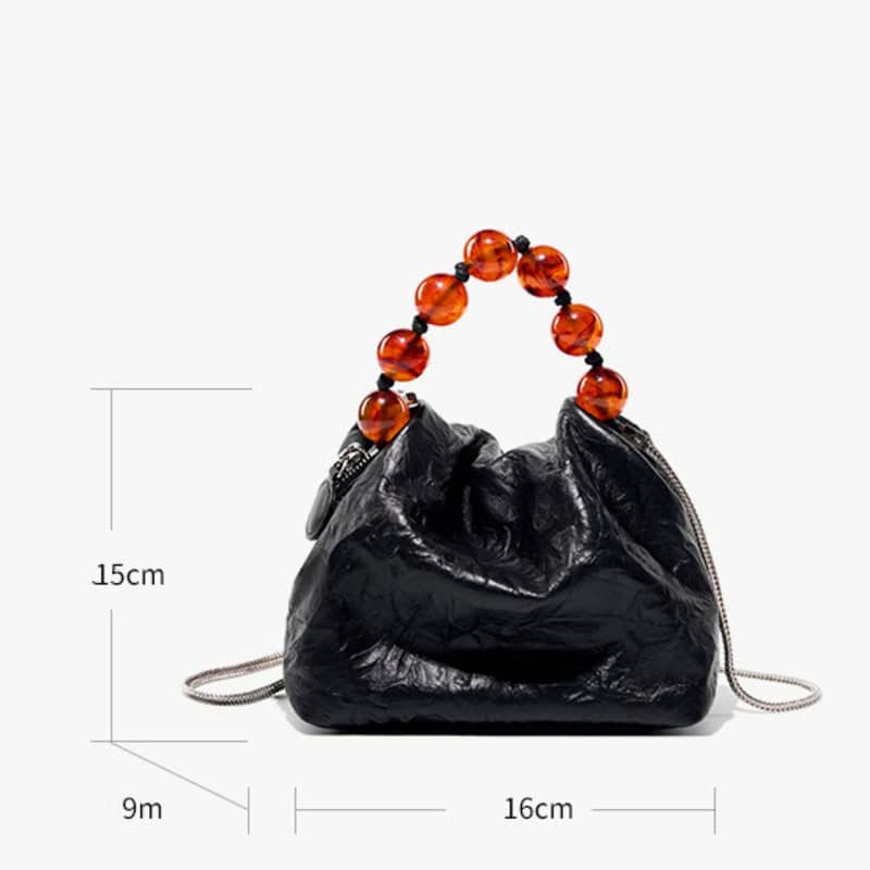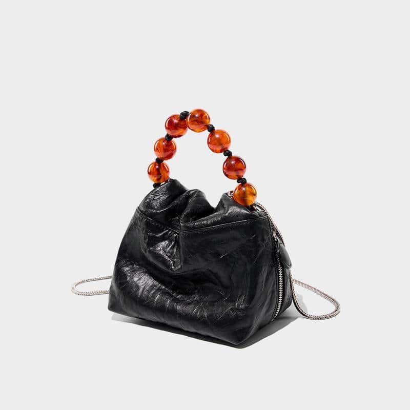 This bag is not just a fashion statement; it’s a blend of tradition and modernity, designed to cater to the stylish, busy woman. The use of premium cowhide ensures that each bag is unique, bearing the hallmarks of high-quality leather. The bead detailing is meticulously applied, offering a unique and sophisticated touch that elevates any outfit.