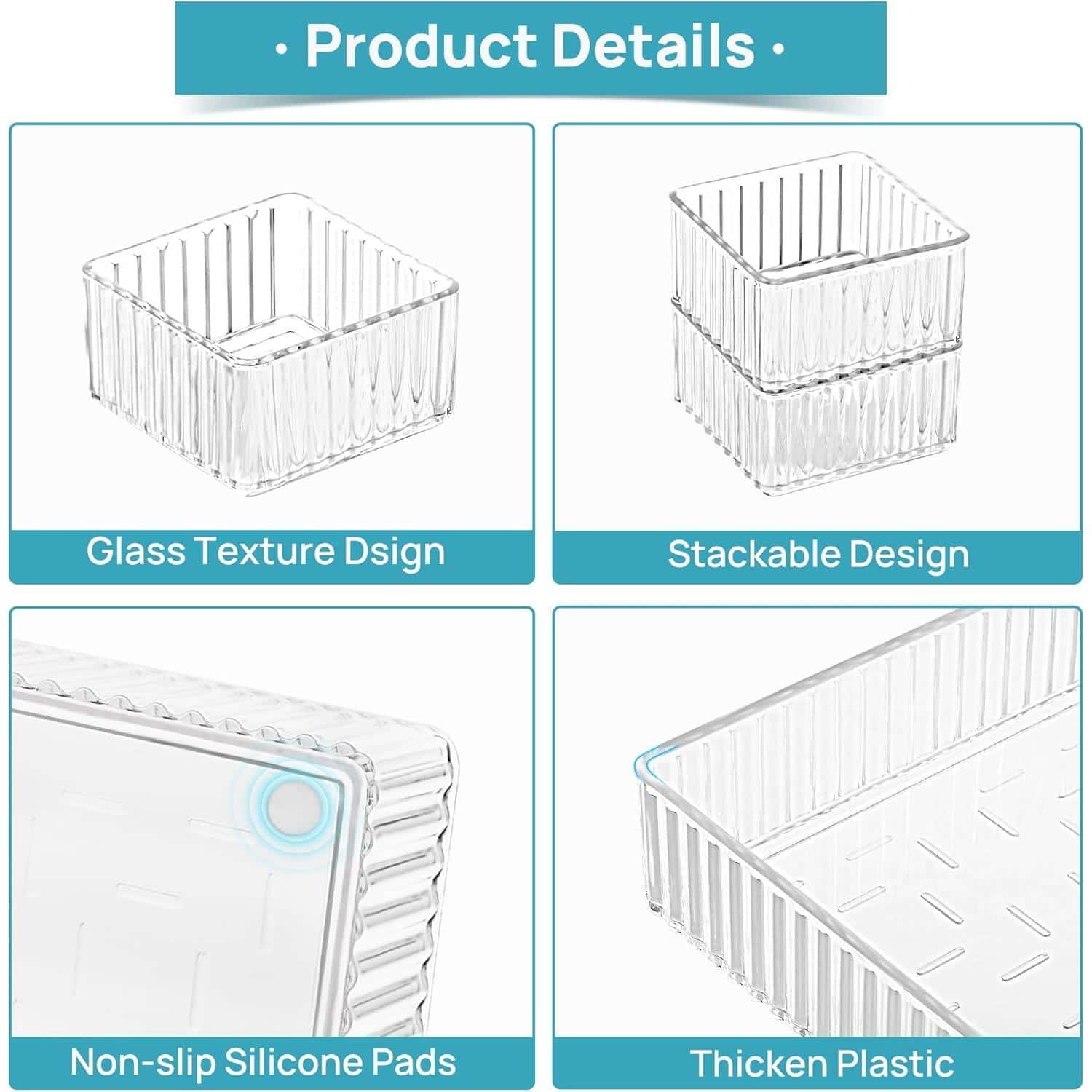 Bring order and elegance to your home with our Clear Stackable Drawer Organizer Bins. Enhance every room with these easy-to-clean, durable, and versatile storage solutions. Start enjoying a more organized, stress-free environment today!