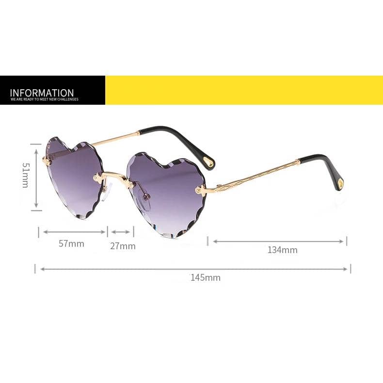 - Rimless Heart Design: Unique heart-shaped lenses for a playful yet elegant look.