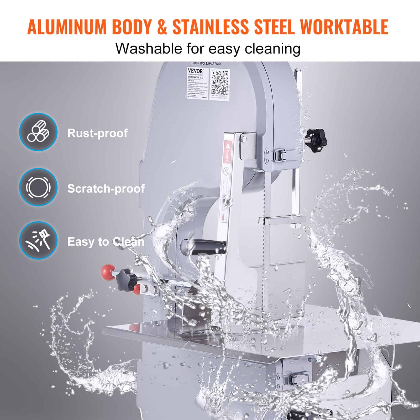 This electric meat bandsaw stands out with its 1100W pure copper motor, razor-sharp stainless steel blades, and durable aluminum alloy construction. It’s built to handle high-volume cutting with ease, processing up to 441 lbs per hour. With adjustable cutting thickness ranging from 0.16 inches to 7.9 inches, you can achieve precise cuts for any culinary requirement.