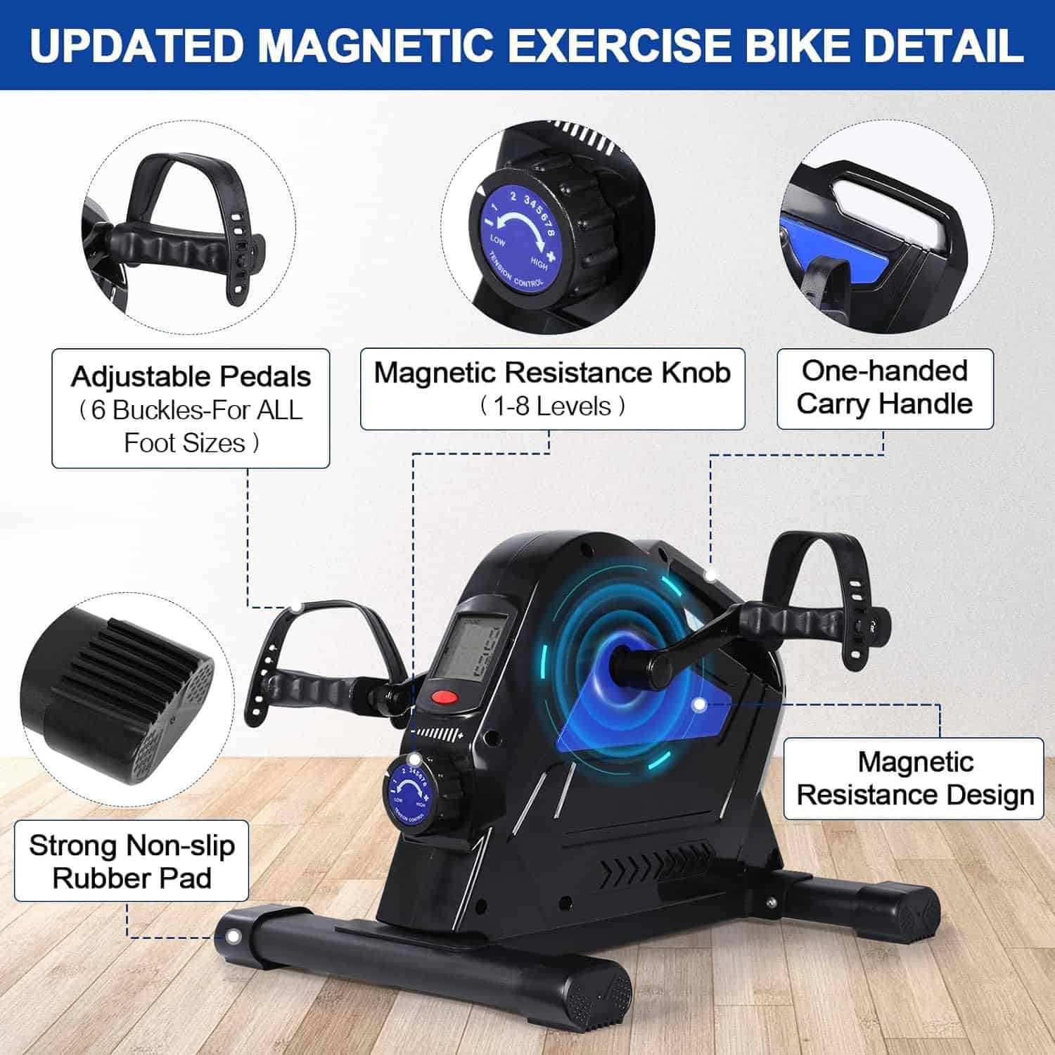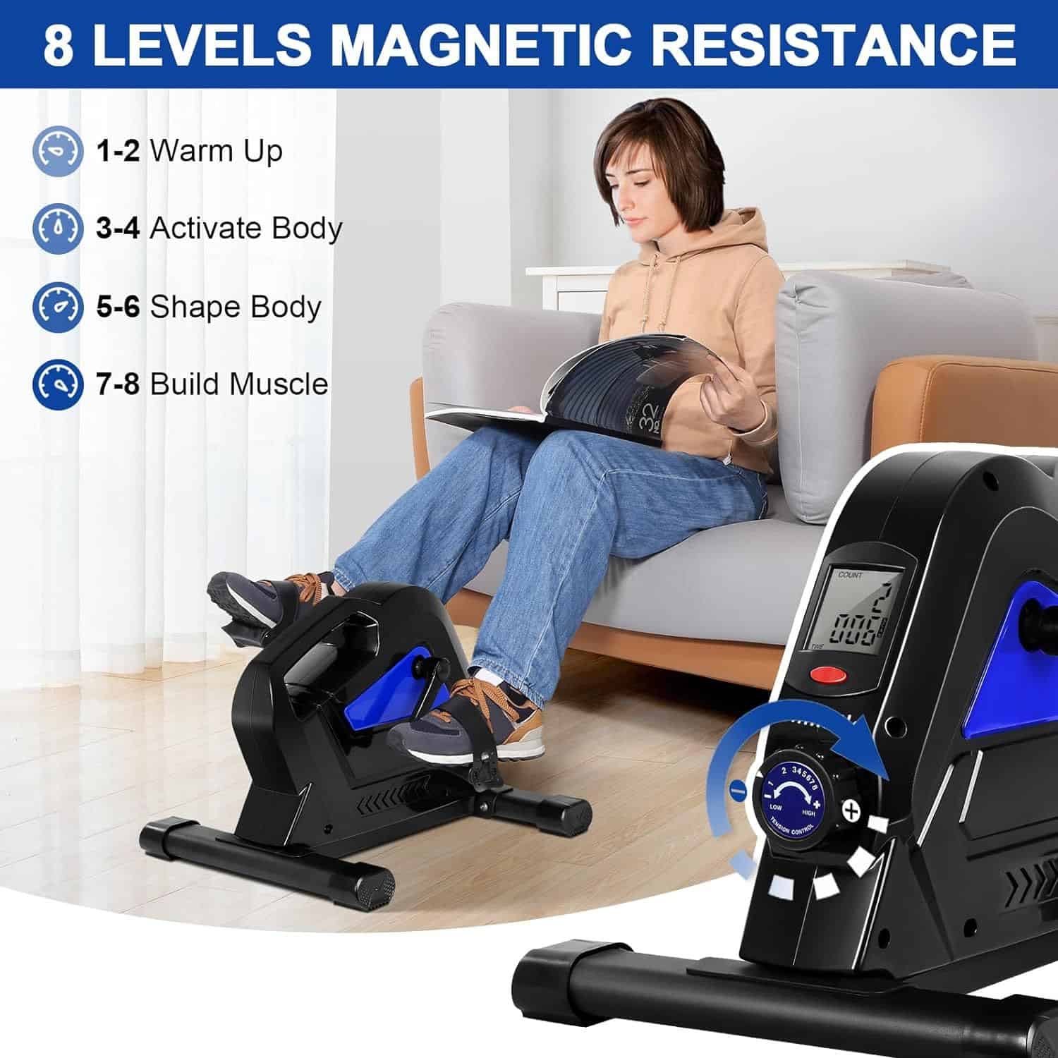 - Magnetic Resistance: Equipped with advanced magnetic resistance mechanism, our mini exercise bike ensures a smooth and quiet pedaling experience. Customize your workout intensity effortlessly, making it suitable for both arm and leg exercises.