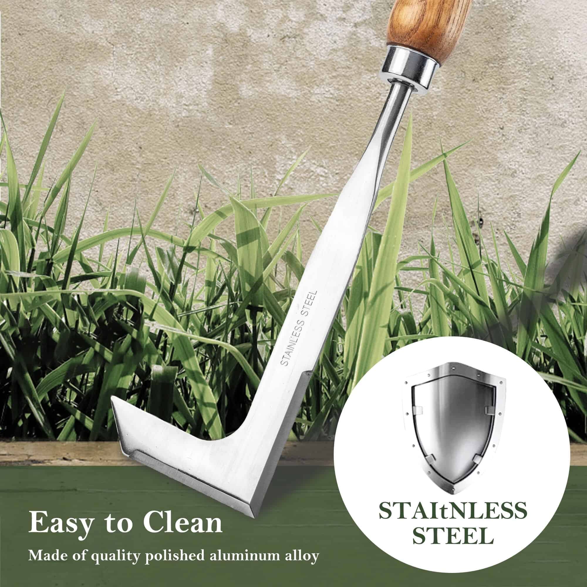 This tool is engineered for precision and efficiency. The L-shaped stainless steel blade makes it easy to reach even the most hidden weeds, while the ergonomic wooden handle ensures comfort during prolonged use. Its rust-resistant design guarantees a reliable performance season after season. Lightweight and compact, it’s the perfect addition to any gardener’s toolkit.