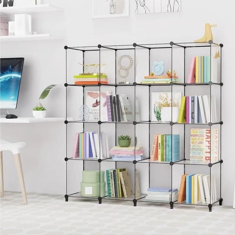 Transform your living space with our Cube Storage Organizer 16-Cube Bookshelf. Available in elegant White, sleek Black, or contemporary Transparent options, this versatile storage solution combines style with functionality. Say goodbye to clutter and hello to a beautifully organized home!