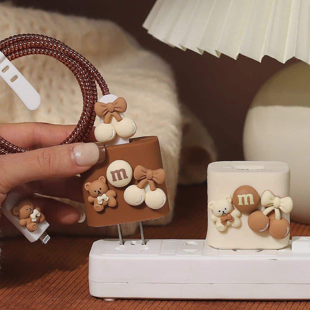 Our Cable Organizer and Charger Protector Kit comes with an array of features designed for durability and convenience. The kit is crafted from high-quality TPU material, showcasing a range of designs from adorable bears to cute anime characters. Compatible with Apple’s 18W and 20W chargers, each sleeve snugly fits around your cable, providing a meter of protection with every piece.