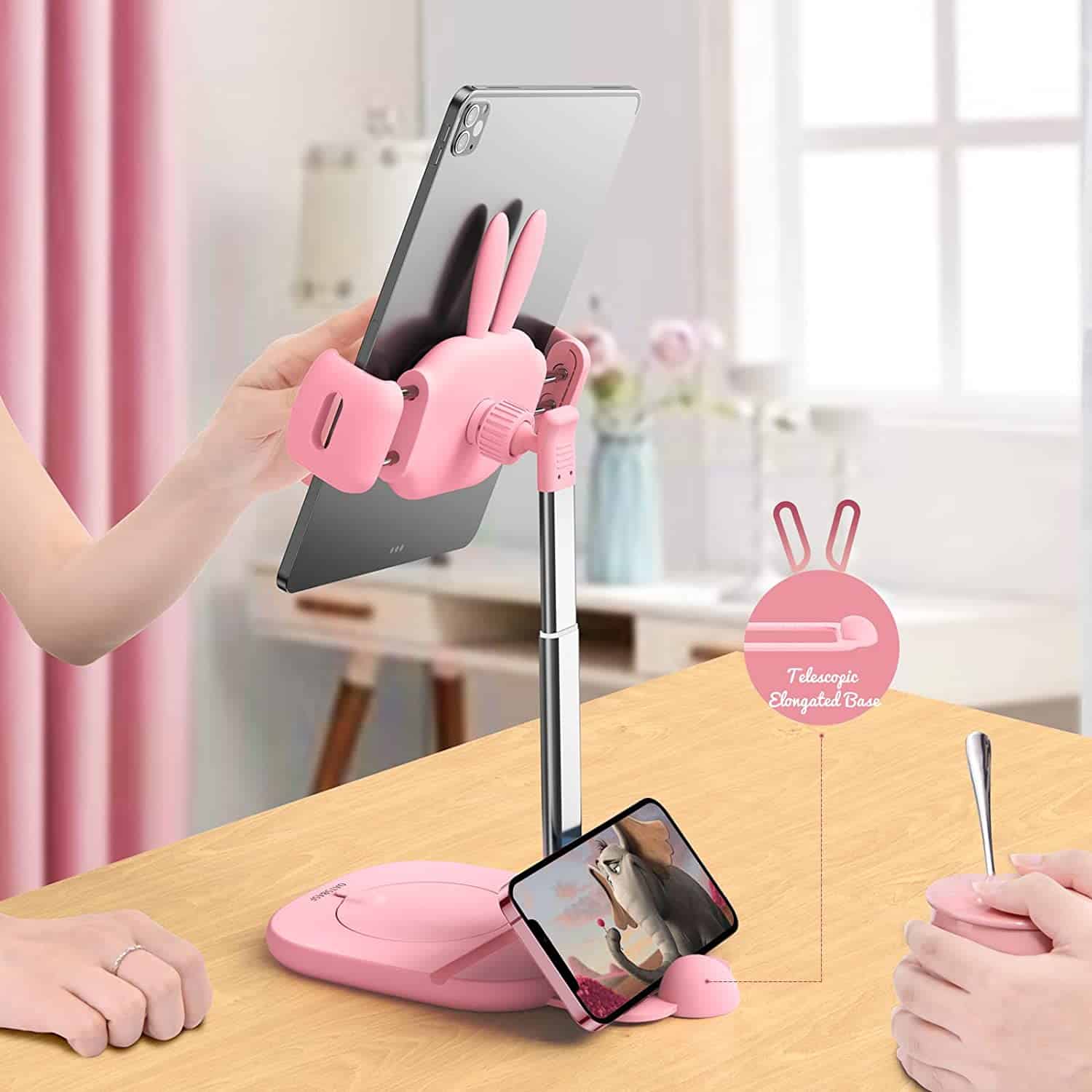 Cute Bunny Adjustable Phone and Tablet Holder with Multifunctional Base