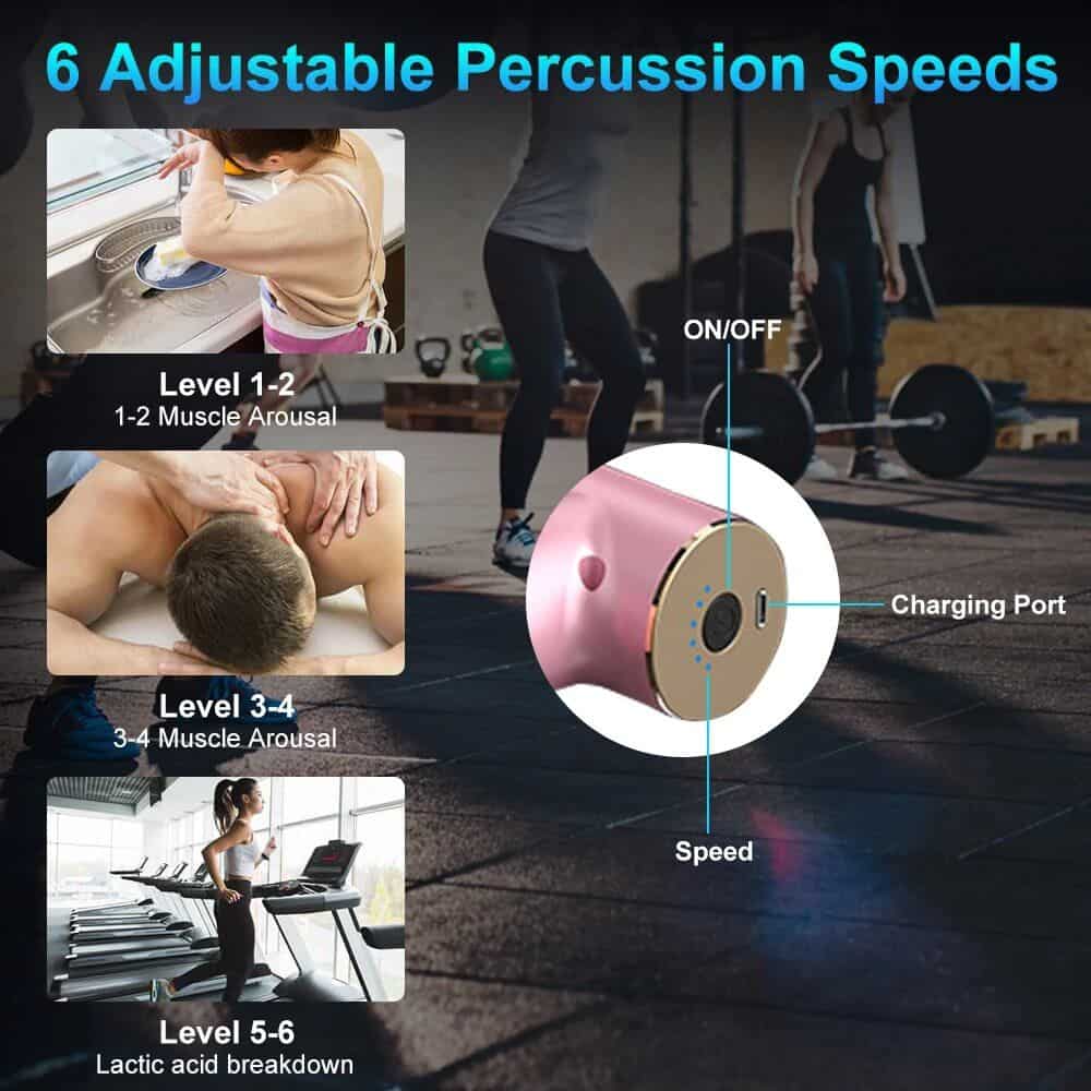 - Powerful Percussion: From a gentle 1800 rpm to an intense 3,200 rpm, choose from 6 distinct speed settings to target and relieve muscle soreness.