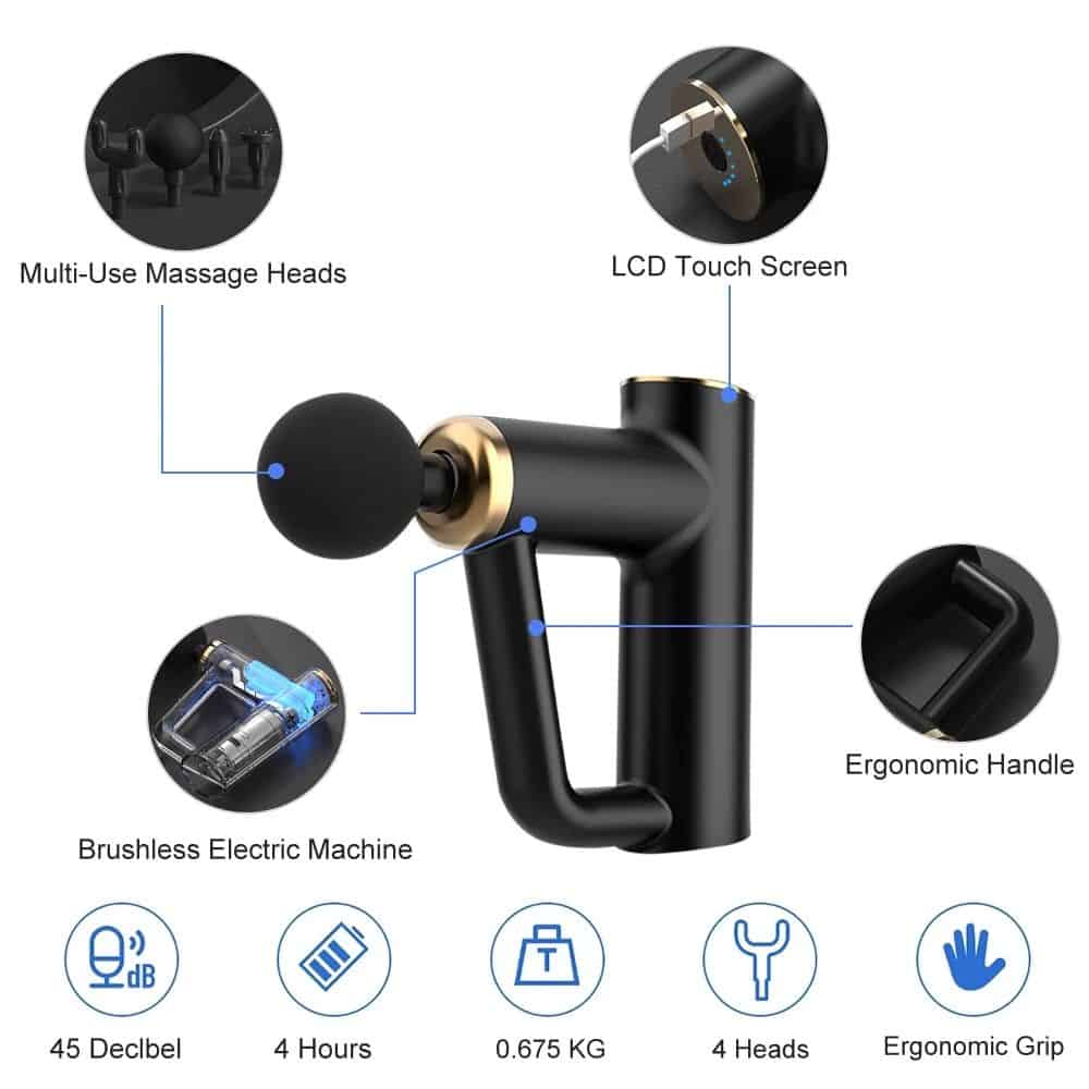 - Adaptable Attachments: Comes with 4 interchangeable heads tailored to massage different muscle groups and pain points.