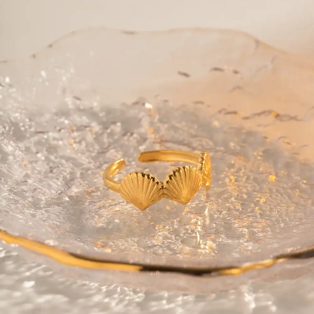 Elegant gold shell-shaped ring for women, perfect for stylish accessories and daily wear.