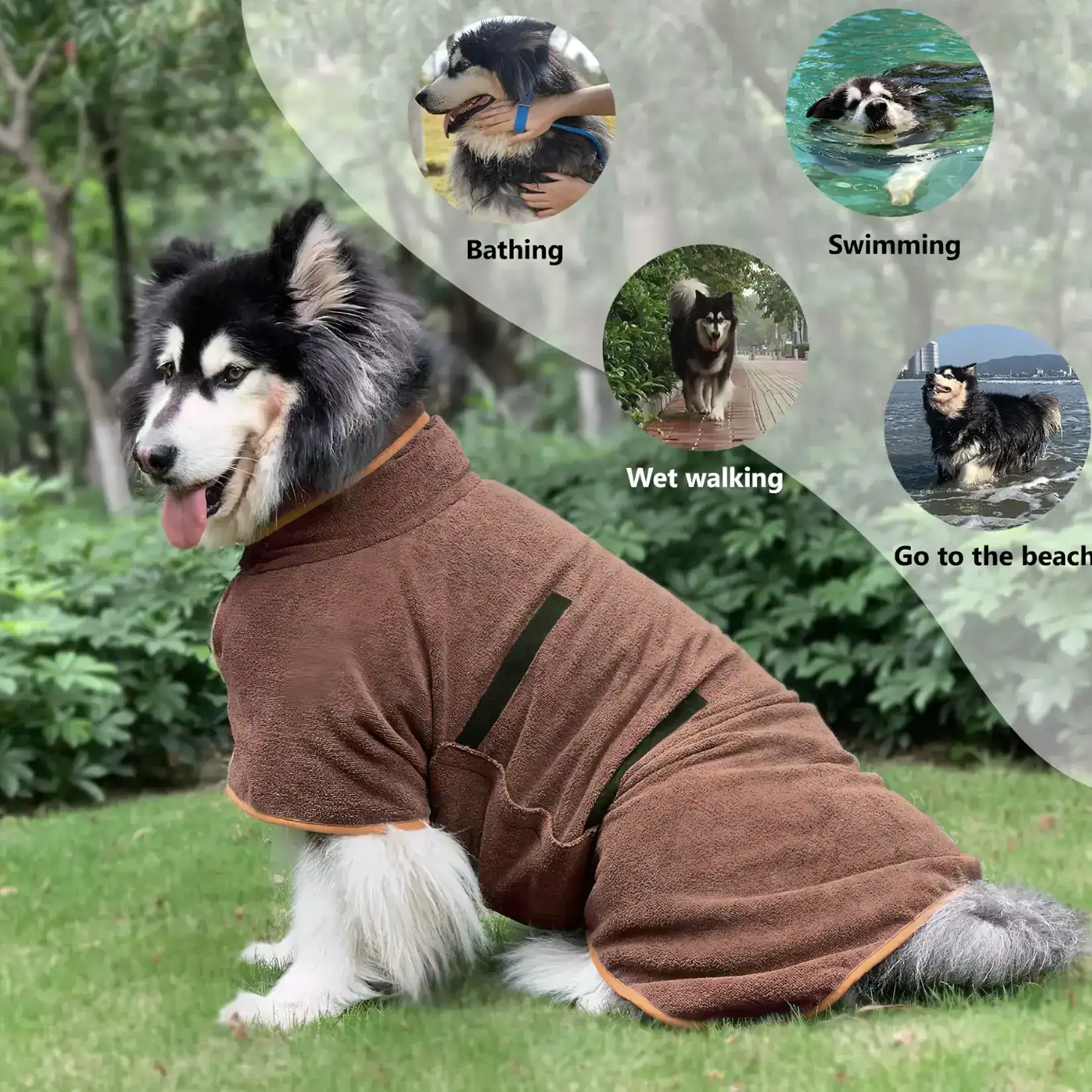 Introducing our Dog Microfiber Bathrobe Towel, the ultimate solution to post-bath shivers and messy shake-offs. Crafted with love and care, this luxurious bathrobe is designed to pamper your furry friend while keeping your home clean and dry.