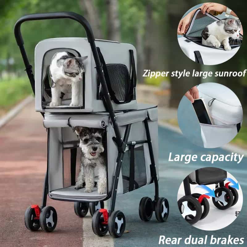 Take your pet outings to the next level with this versatile Double-Layer Foldable Pet Stroller. Designed for pet lovers who refuse to compromise on comfort or convenience, this lightweight yet sturdy stroller is ideal for dogs, cats, and other small animals. Whether you’re planning a leisurely stroll through the park or embarking on a travel adventure, this pet stroller ensures your furry friends are safe, comfortable, and stylishly transported.