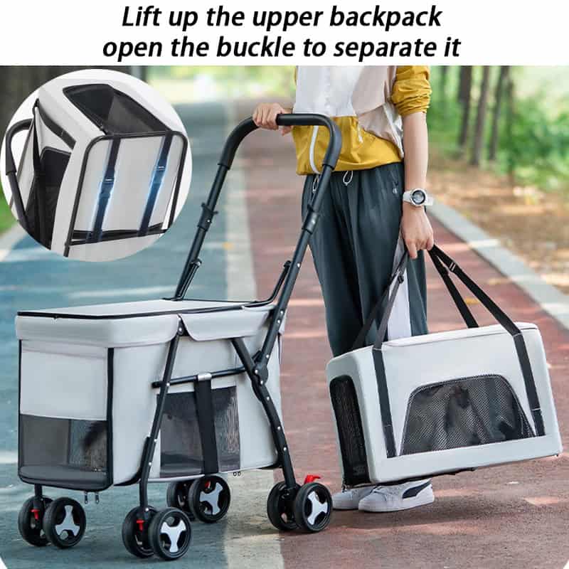 - Multi-Functional: Can be used as a stroller, push-pull trolley, or portable pet carrier.