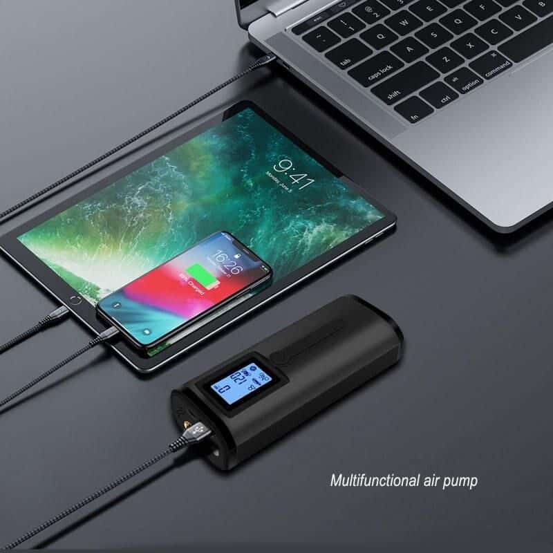 Our Portable Air Pump stands out with its high functionality and user-friendly features. Its ability to inflate tires rapidly, coupled with an automatic shut-off once the desired pressure is reached, ensures both safety and convenience. Ideal for various scenarios, from cycling adventures to roadside emergencies, it’s the tool you didn’t know you needed until you have it. And with its added capability as a power bank, you’re prepared for any situation.