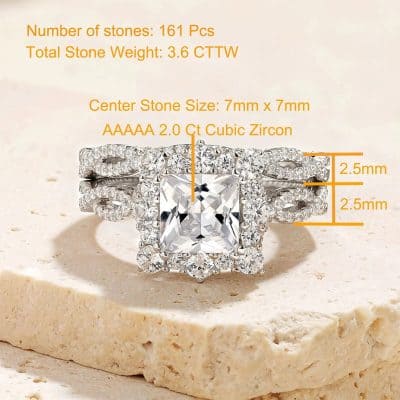 • High-Quality Craftsmanship: Made of solid 925 sterling silver and coated with rhodium plating, our wedding ring set ensures increased luster, minimal tarnishing, and a comfortable fit.