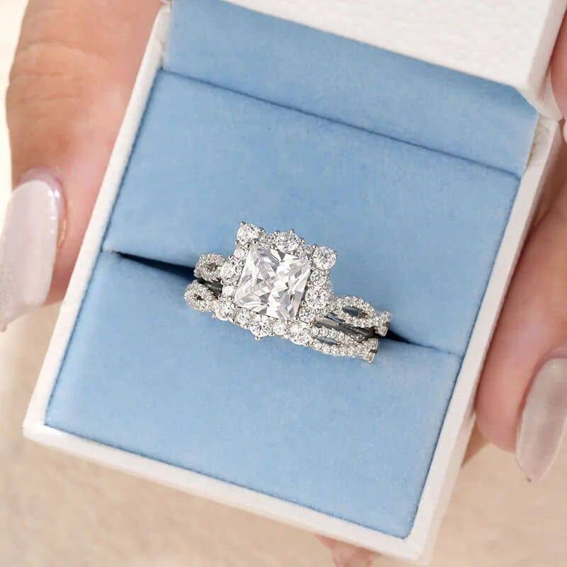 Elegant 925 Sterling Silver Princess Cut Engagement Ring Set