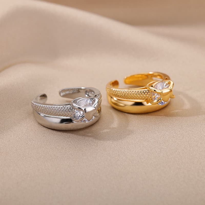 Embrace timeless elegance with our Gold-Tone Adjustable Heart Ring, crafted for women who value both romance and style. This chic, stainless steel ring blends luxury with trend, making it the perfect accessory for weddings, engagements, and special occasions. Designed with a delicate heart shape and adorned with high-quality cubic zirconia, this ring shines with sophistication and charm. Whether you’re looking for a special gift or a statement piece for your collection, this beautiful heart ring is sure to captivate and impress.