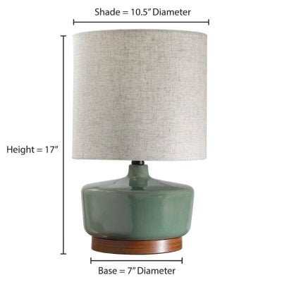 Our lamp boasts a deep green ceramic base, paired with a natural wood touch, bringing a unique and sophisticated look to your space. The fabric shade complements the ceramic, diffusing light beautifully to create a cozy ambiance. Standing at an elegant height of 17 inches, it is not just a lighting fixture but a piece of art.