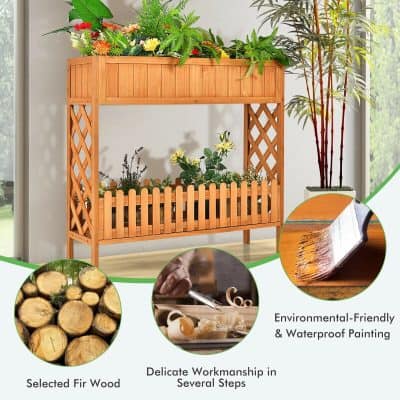 Introducing our Elevated 2-Tier Wooden Garden Bed, a gardener’s delight that brings efficiency and style to your outdoor spaces. Whether you’re a seasoned green thumb or a beginner, this raised planter box is designed to elevate your gardening game. Perfect for backyards, patios, balconies, and greenhouses, it’s not just a garden bed, it’s a centerpiece for your outdoor decor.