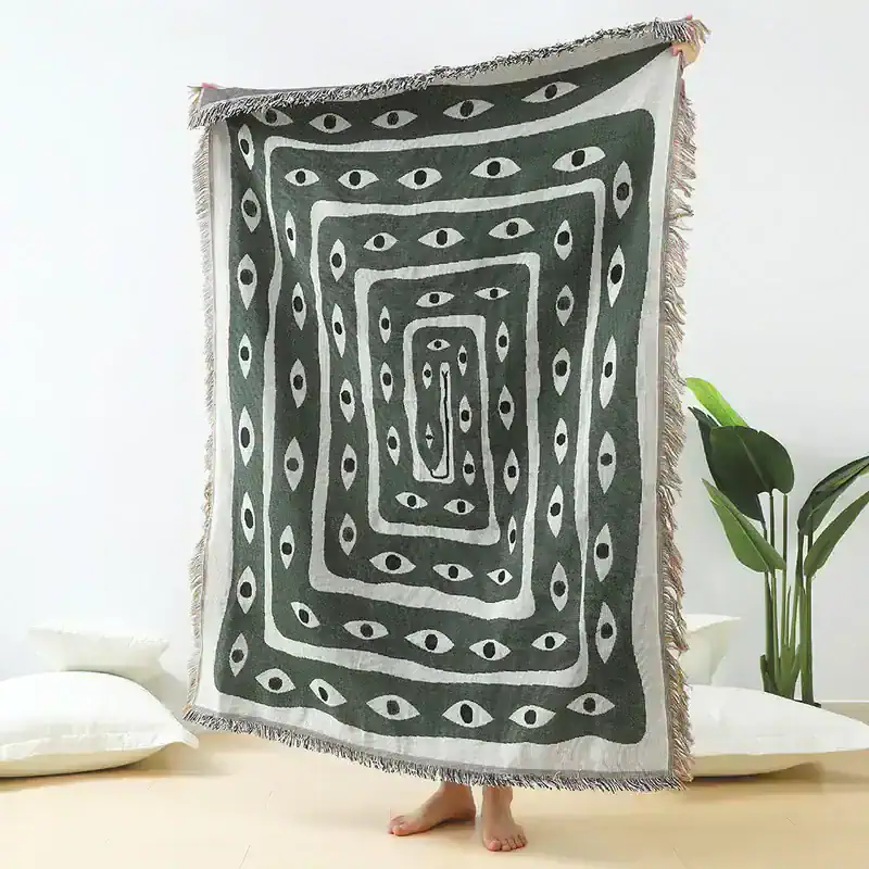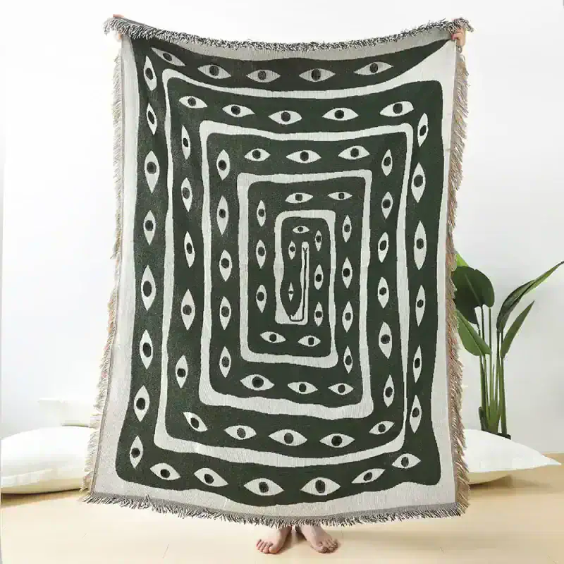 Add a touch of unique style and comfort to your home or outdoor adventures with the Eye Snake Throw Blanket. This beautifully woven jacquard blanket, crafted from 100% premium cotton, brings both functionality and fashion to any space. With its trendy “Ins” snake pattern, it serves as an excellent décor piece, wall hanging, or practical item for outdoor activities like camping or picnics. Its 125x150cm size makes it perfect for curling up on the couch or spreading out at the beach, offering both softness and durability.