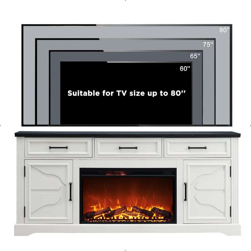 Enhance your living space with the Farmhouse Fireplace TV Stand, a perfect blend of rustic charm and modern functionality. Designed to accommodate TVs up to 80 inches, this entertainment center transforms your room into a cozy retreat. Featuring a 30-inch built-in electric fireplace, it combines practicality with warmth, offering a captivating focal point for your home.