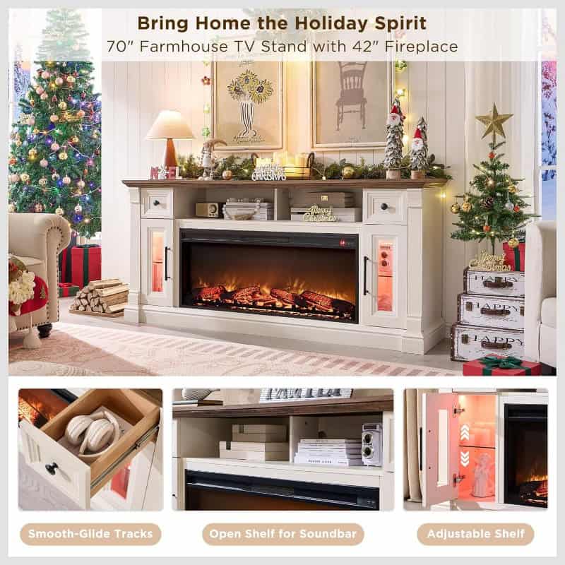 Bring the charm of a rustic farmhouse and the comfort of modern technology to your home with this fireplace TV stand. Whether you’re hosting a movie night, creating a cozy reading nook, or simply enhancing your home’s decor, this piece is designed to impress. Don’t wait—transform your space with style and warmth today!