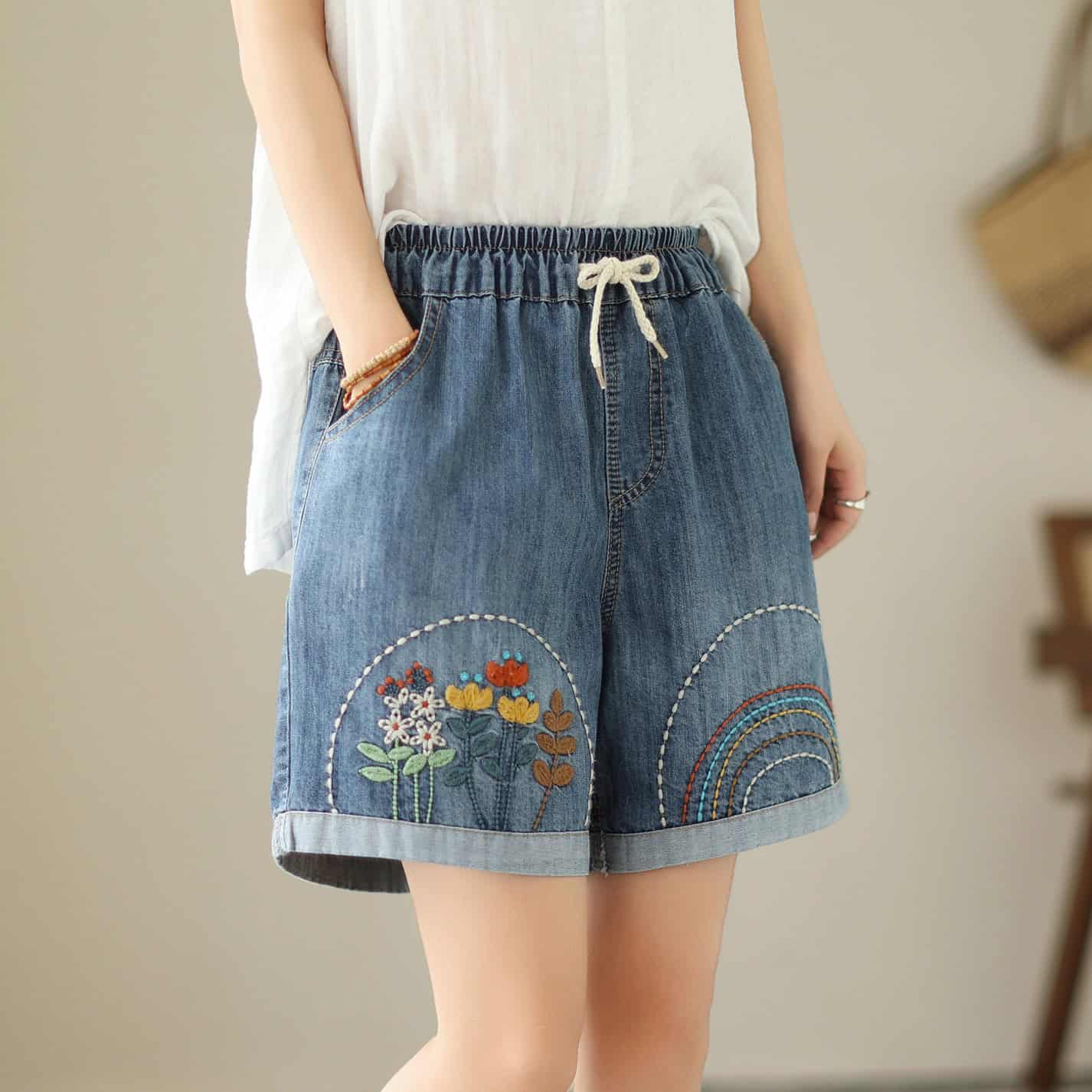 Don’t miss out on the opportunity to add a touch of retro charm to your summer wardrobe. With their unique design and comfortable fit, our Floral Embroidered Denim Harem Shorts are sure to become your new favorite go-to piece. Order yours today and step into summer with confidence and style!