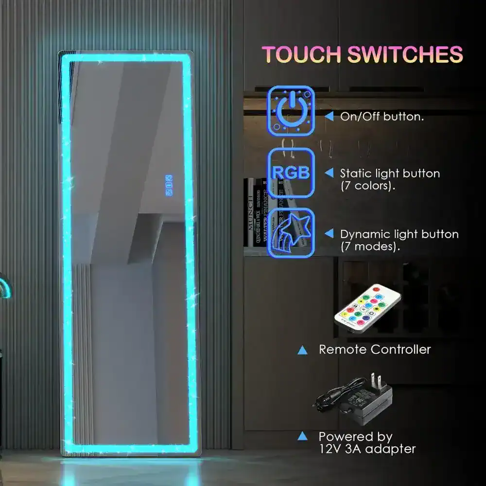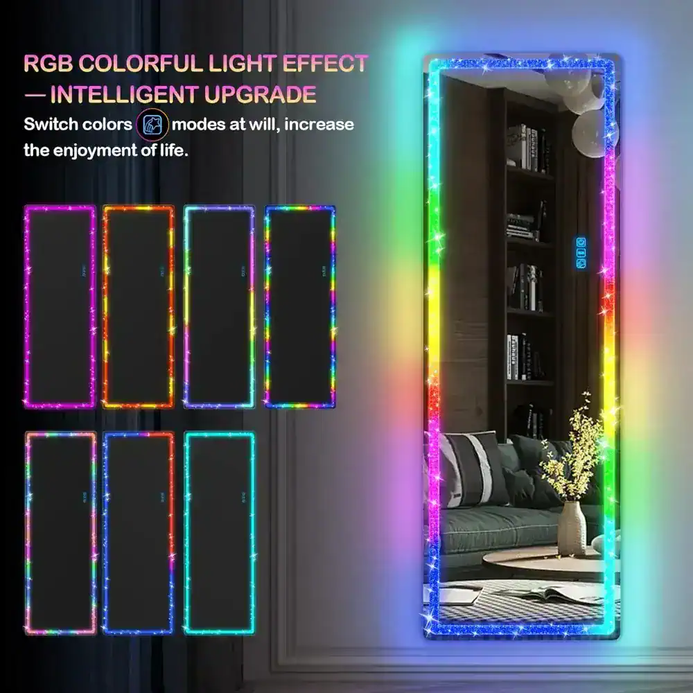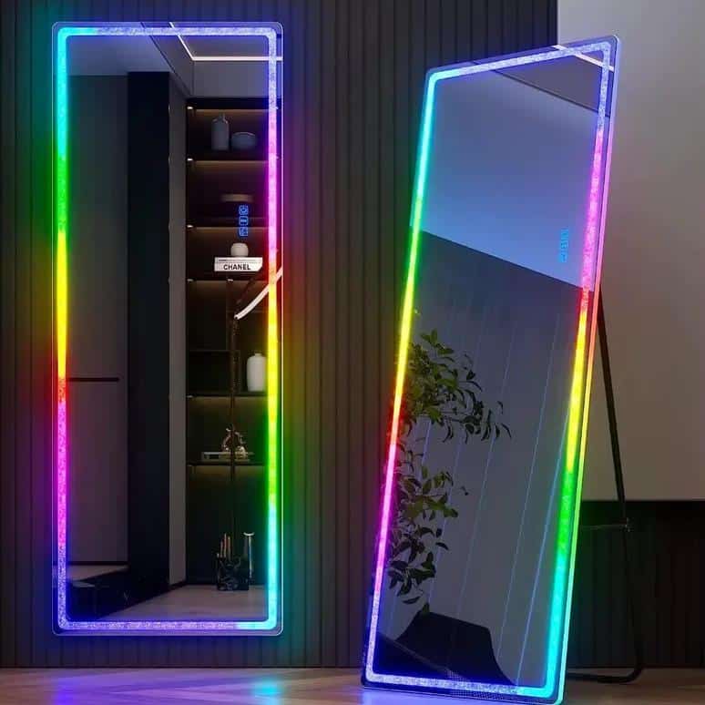Elevate your home decor with this stunning Full Body LED Lighted Mirror. Designed for modern living, it features a dazzling crushed diamond frame that adds a touch of luxury to any room. Whether mounted on the wall or used as a free-standing mirror, this versatile piece combines style, functionality, and cutting-edge technology to become a centerpiece in your bedroom, dressing room, or living area.