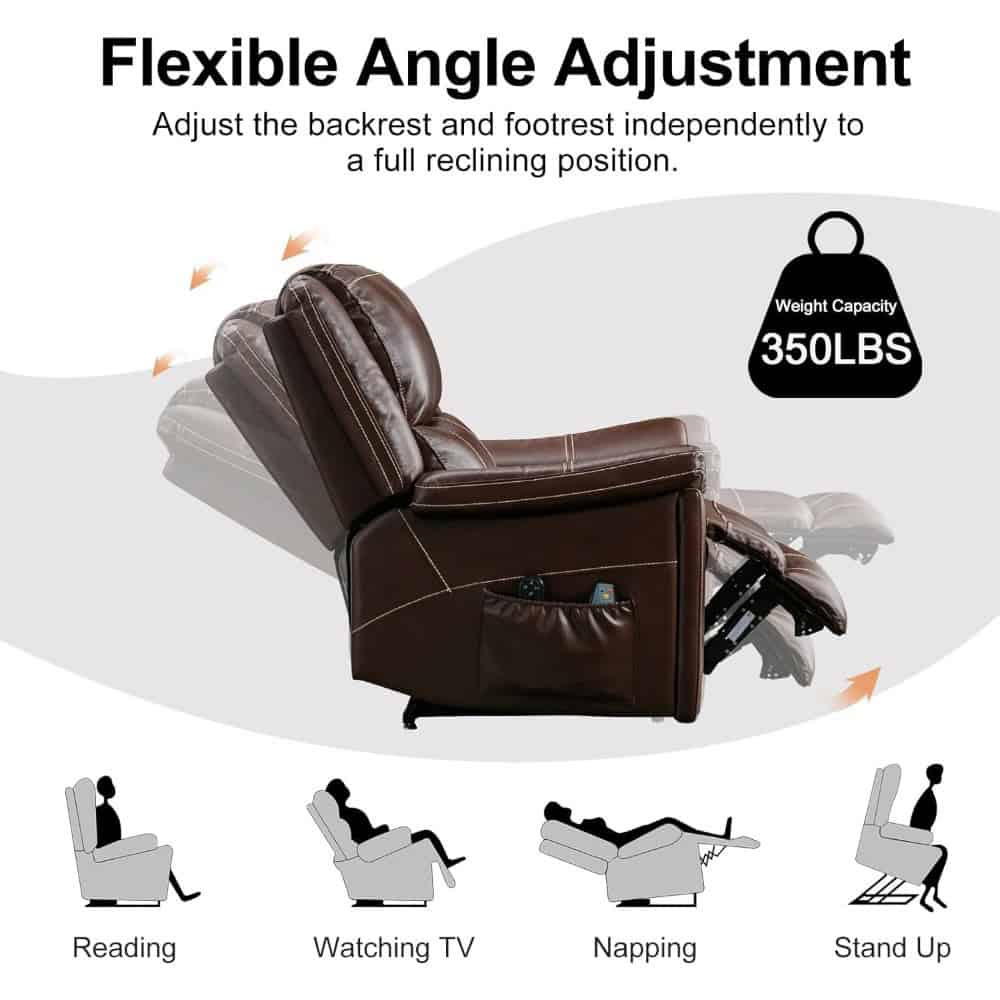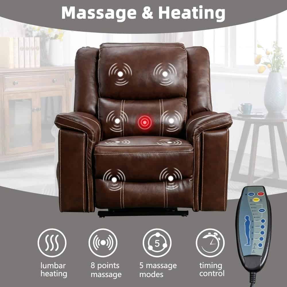 Genuine Leather Power Lift Recliner with Dual Motors, Massage, and Heat