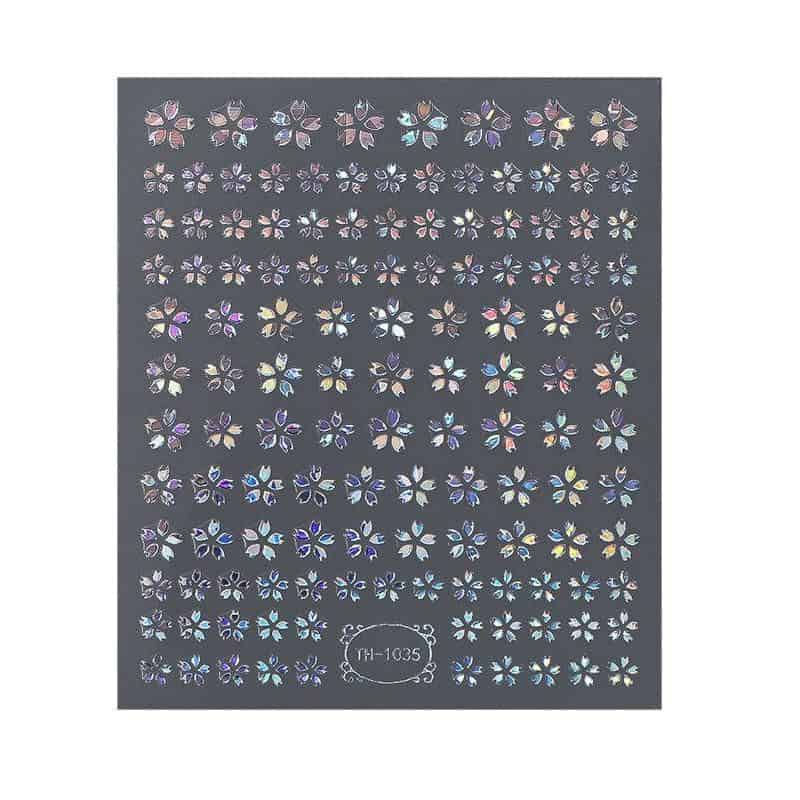 Holographic flower nail art foil for professional manicure and nail styling. Perfect for creating stunning, iridescent nail designs with vibrant holographic effects. Ideal for salons and DIY at home.
