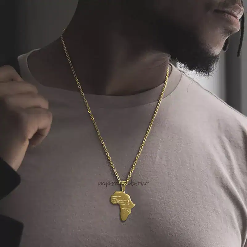 Infuse your style with a touch of elegance and cultural pride with our Gold Color African Map Pendant Necklace. This trendy piece, perfect for both men and women, is not just a fashion statement but a celebration of heritage and contemporary design. Whether you’re dressing up for a party or accessorizing for a casual outing, this necklace adds a unique flair to any outfit.