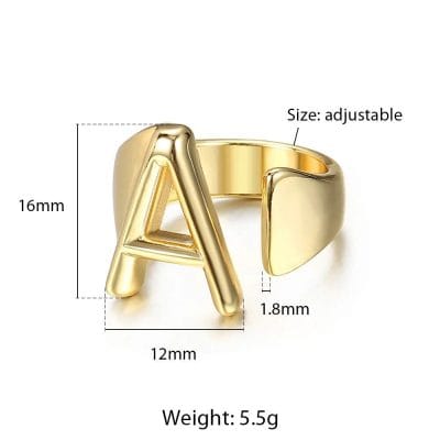 Introducing our Gold Color 26 Letters Opening Ring, a mesmerizing piece that transcends trends, adding a touch of sophistication to your ensemble. Crafted with precision, this adjustable finger ring is more than jewelry; it’s an expression of individuality.