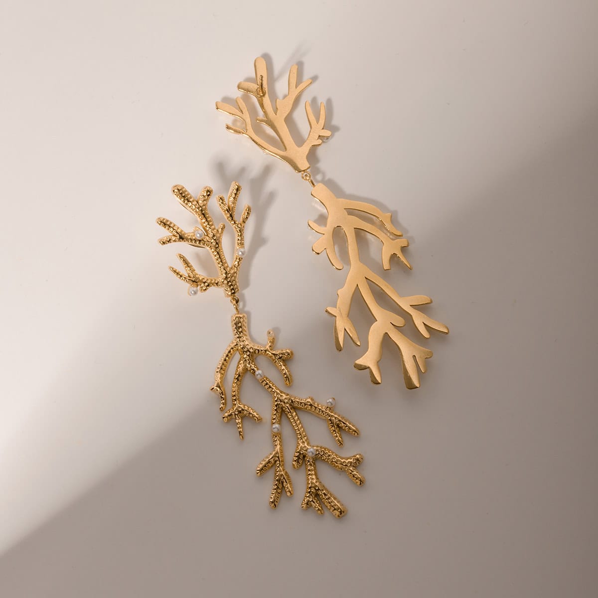 Featuring a stunning coral-shaped pearl pendant, these earrings are a timeless addition to your jewelry collection. Made from high-quality stainless steel and adorned with 18K PVD gold plating, our earrings are not only tarnish-proof but also boast a luxurious shine that will last for years to come.