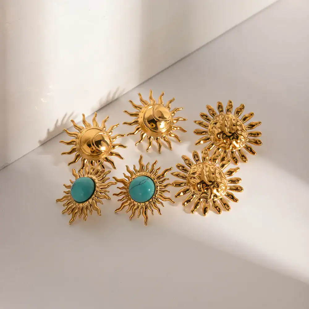 - Timeless Design: Sunflower-shaped earrings with turquoise inlay for a chic and sophisticated look.