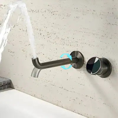 Add sophistication and functionality to your bathroom with this modern wall-mounted faucet. Its stunning gun gray finish and durable construction make it a standout choice for anyone looking to create a luxurious space. Experience the perfect blend of style and performance—upgrade your bathroom today.