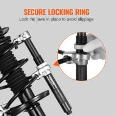 This tool stands out for its versatility, safety, and ease of use. Its adjustable safety brackets and secure locking ring provide a stable and safe compression process, reducing the risk of spring rebound. The high-hardness steel construction ensures longevity, resisting corrosion and rust, even under harsh conditions. Its compatibility with a standard 3/4″ socket makes it a handy addition to any toolkit.