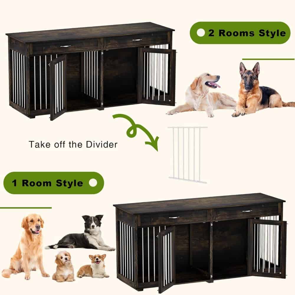 - Dual Room Design: Includes a removable divider to accommodate two dogs or convert into a single spacious room.