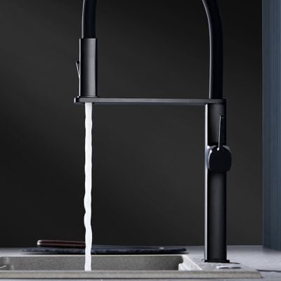High-quality kitchen faucet with pull-down spray, sleek black finish, and durable design for home or commercial use. Enhances kitchen style and functionality with easy operation.