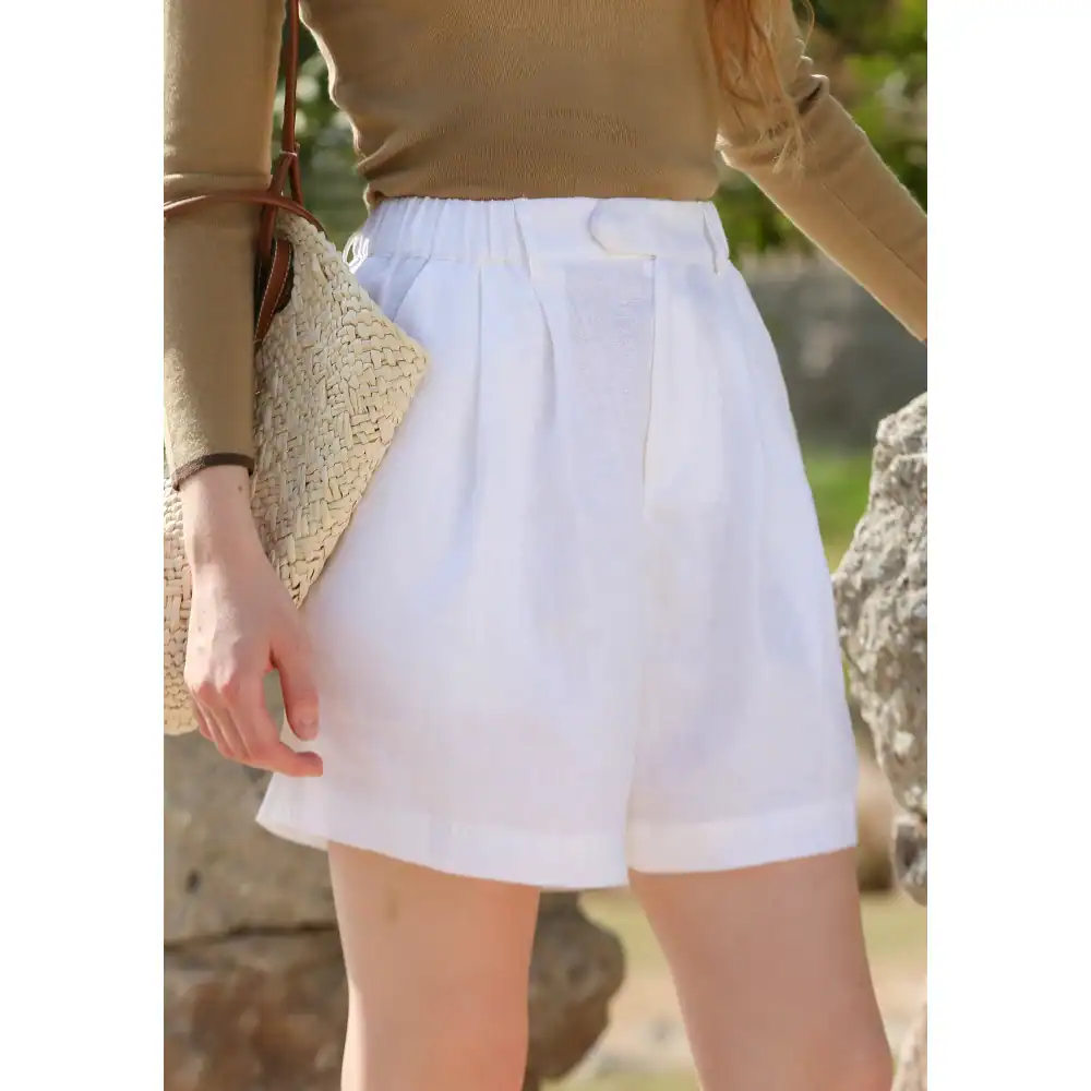 Ideal for the warmer months, these linen shorts are perfect for a variety of occasions. They are your go-to choice for casual outings, vacation wear, or a relaxed day at home. Their high-waist design pairs beautifully with crop tops, blouses, or a simple t-shirt, making outfit coordination a breeze.