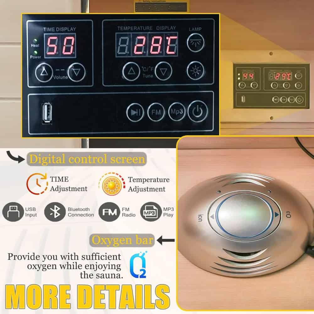 • Far Infrared Heating: Uses advanced infrared technology to provide deep-penetrating warmth that promotes detoxification, stress relief, and relaxation.