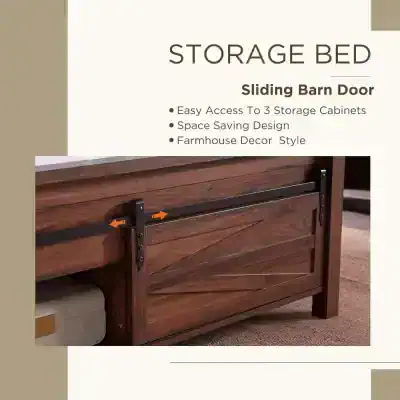 King Size Farmhouse Bed Frame with Sliding Barn Door Storage