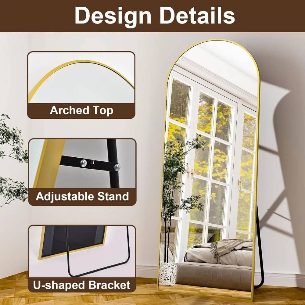 Upgrade your home with this beautiful and functional full-length mirror. Whether you’re looking to make a bold statement or simply need a practical addition to your space, this arched floor mirror is the perfect solution. Order now to elevate your home with timeless elegance and unmatched quality.