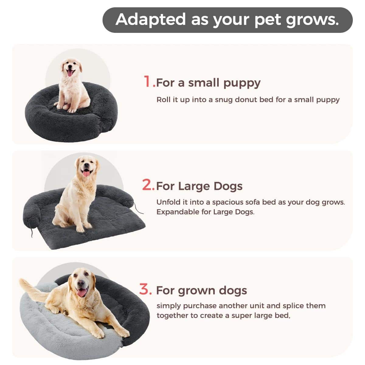 - Three Sizes: Available in medium (35.4″), large (41.3″), and extra-large (45.3″) to accommodate pets of all sizes.