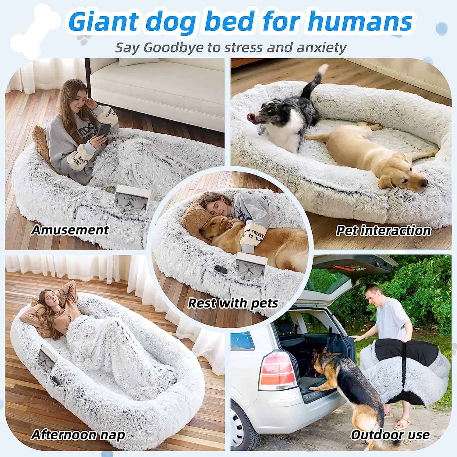 Discover the ultimate in relaxation with the Human Dog Bed, a cozy and oversized haven designed for humans and their furry friends. Whether you’re napping, lounging, or bonding with your pet, this bed offers unparalleled comfort and a sense of security that mimics being embraced. With its thoughtful design and premium materials, this bed is your new favorite spot for rest and relaxation.