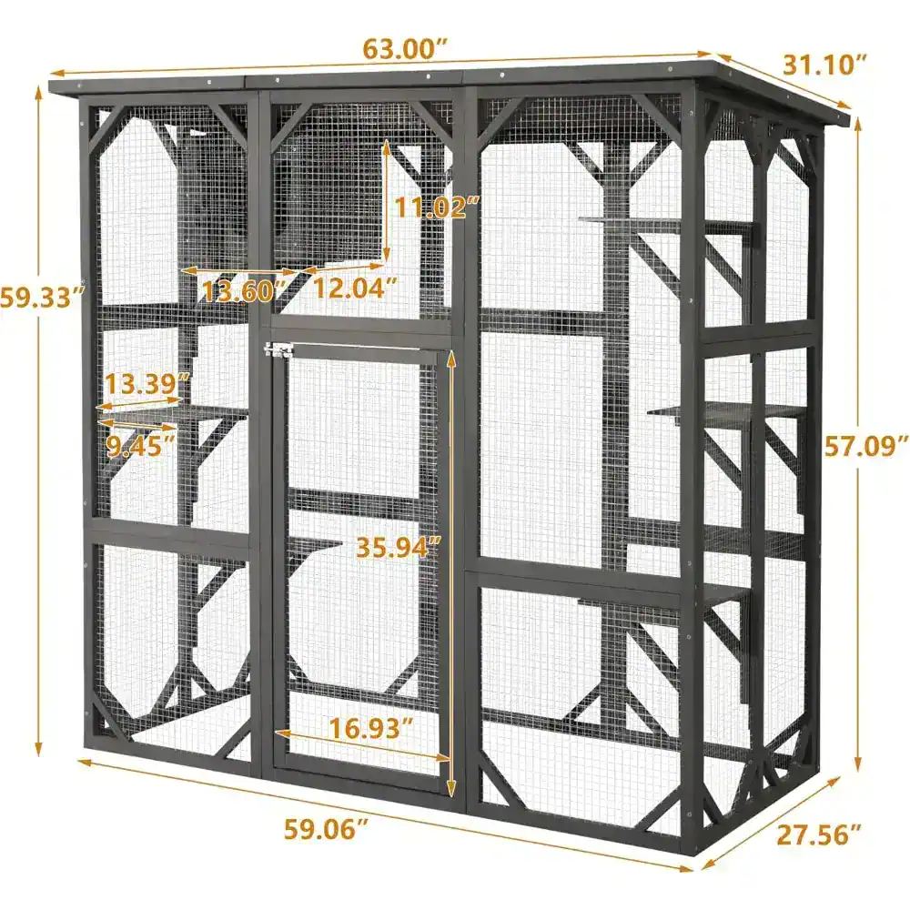 Transform your outdoor space into a paradise for your feline friends with this weatherproof and feature-rich catio. The spacious layout, durable materials, and thoughtful details make it a must-have for any cat-loving home. Treat your cats to the adventure they crave—order your wooden outdoor cat enclosure today!
