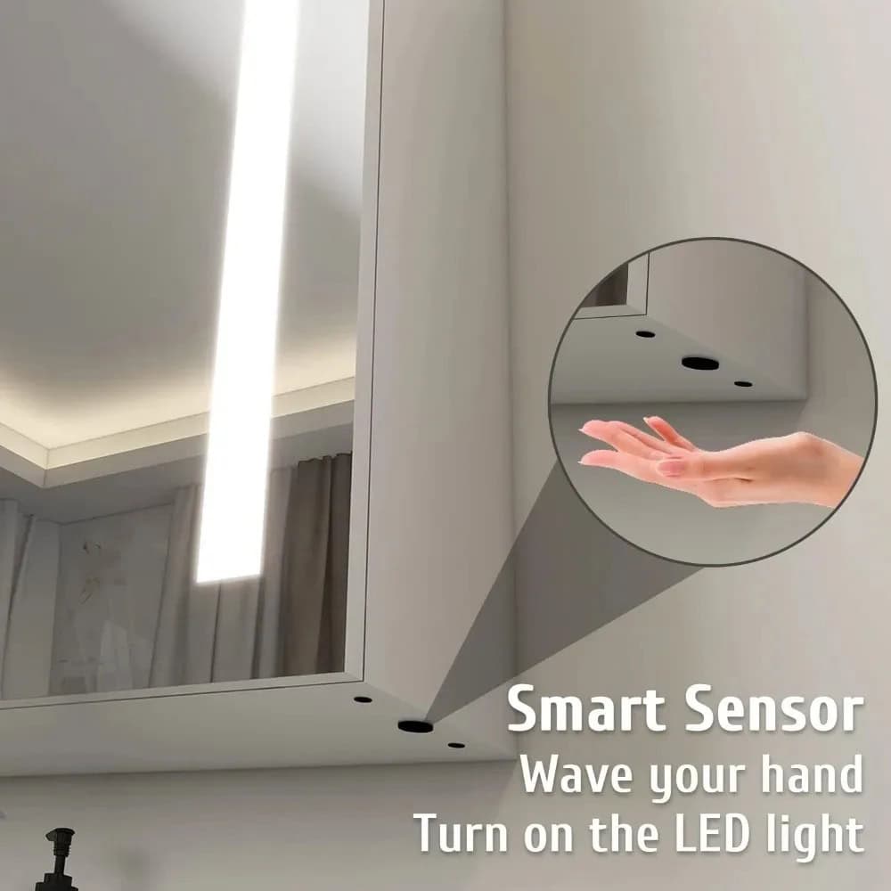 - Smart Sensor Switch: Conveniently located at the bottom right of the cabinet, this motion-activated switch allows you to turn on the LED lights hands-free—ideal for those moments when your hands are full or when entering a dark space.
