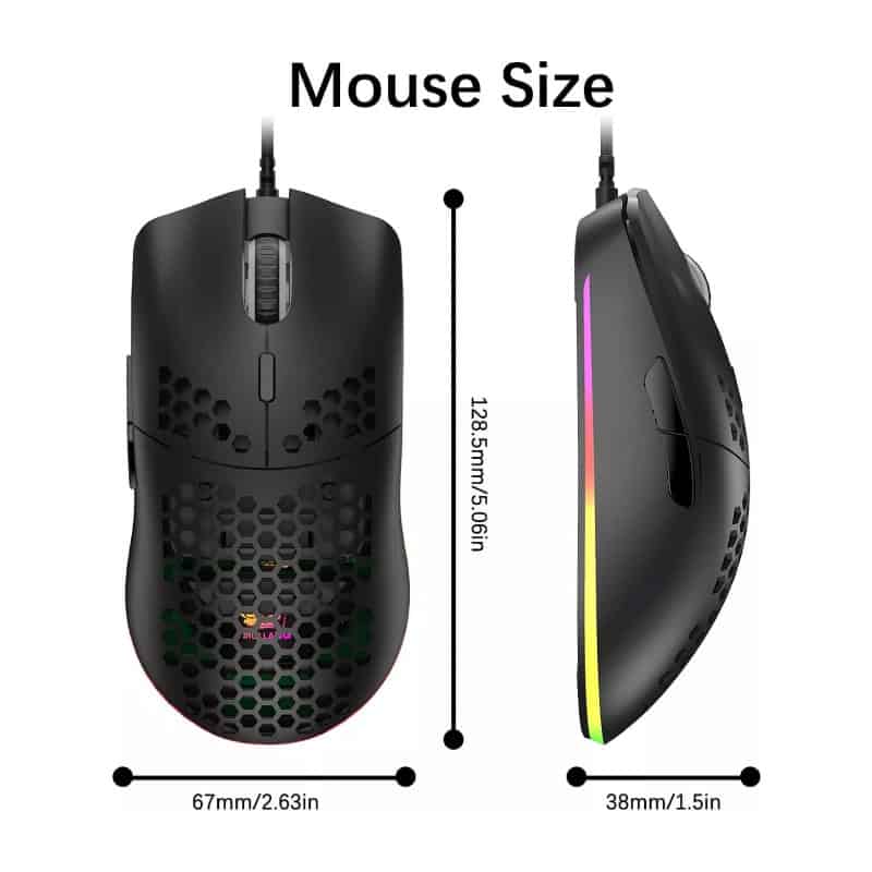 Don’t settle for anything less than the best. Upgrade to the M1 Wired Gaming Mouse today and experience a new level of comfort, precision, and style. With its lightweight honeycomb design, high DPI accuracy, and customizable RGB lighting, this mouse is the perfect addition to your gaming or work setup. Get ready to dominate your games, enhance your productivity, and show off your personalized lighting setup. Order now and elevate your experience to the next level!