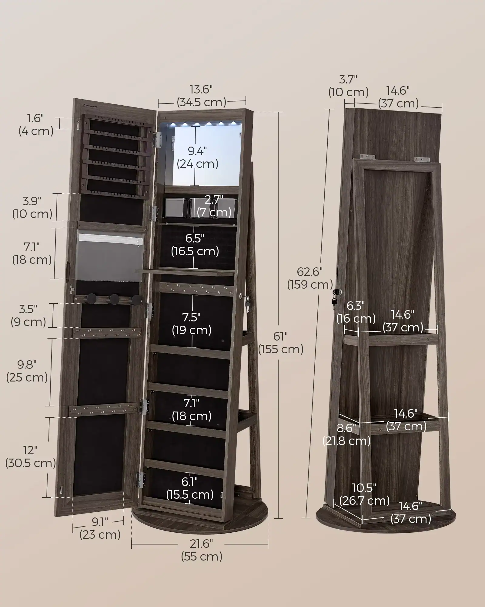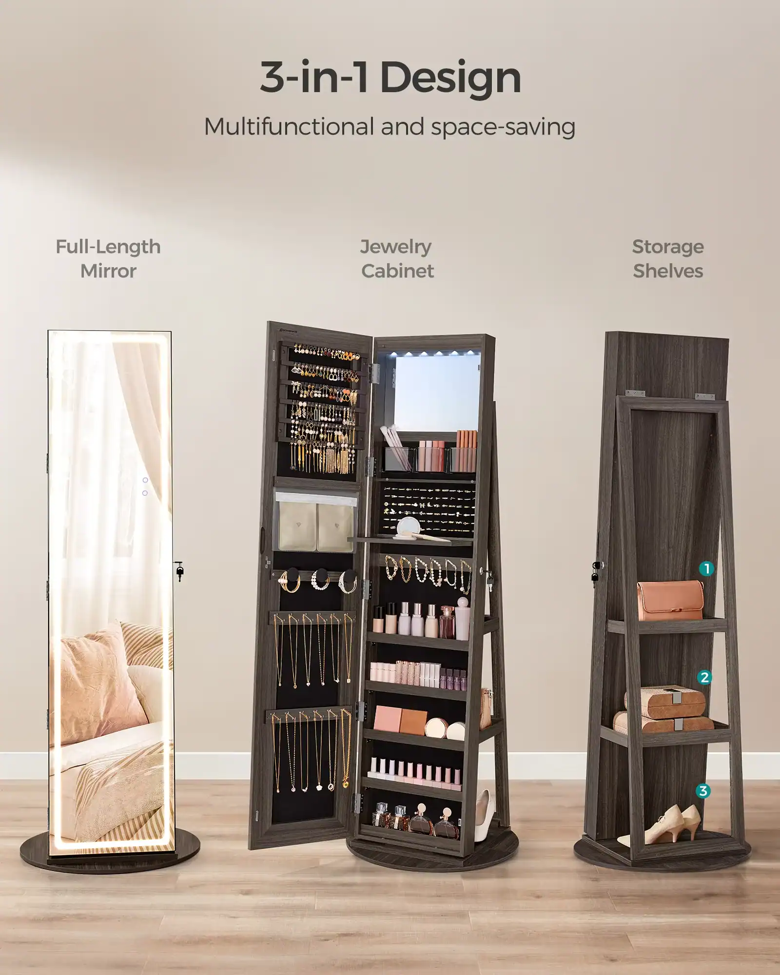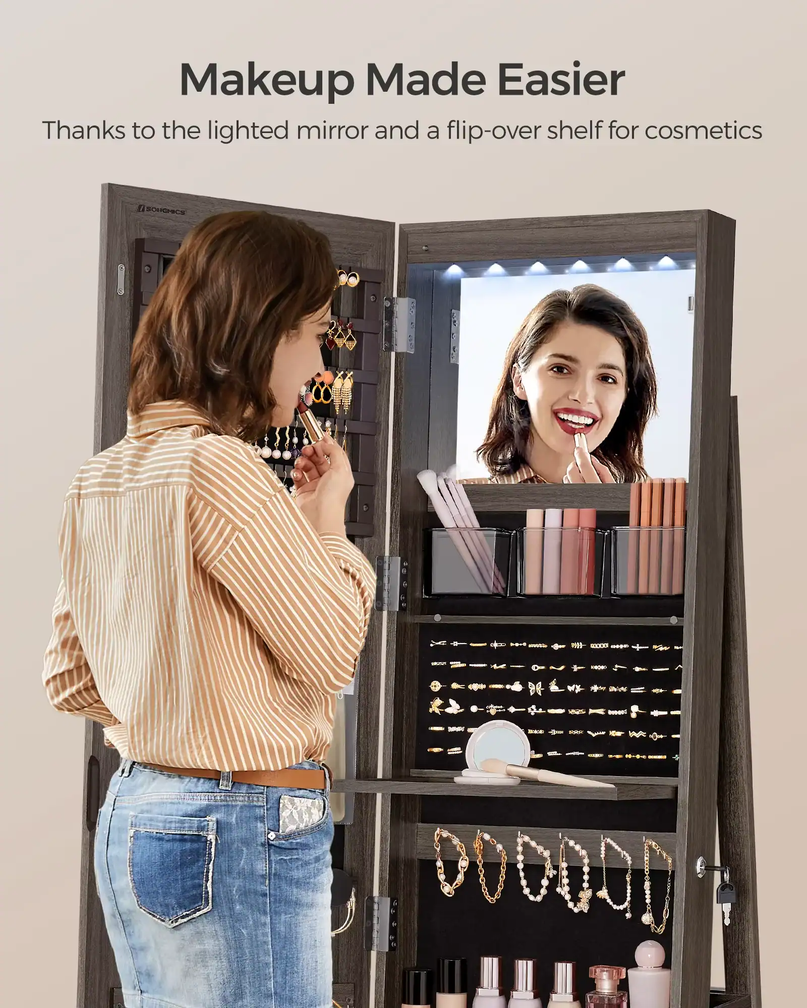 Whether you’re getting ready for a night out or organizing your treasured collection, this jewelry cabinet is your go-to solution. Its smart LED lighting and built-in vanity make it ideal for early mornings, late nights, or any time you want to look your best. The generous storage ensures you’ll never misplace a piece of jewelry again.