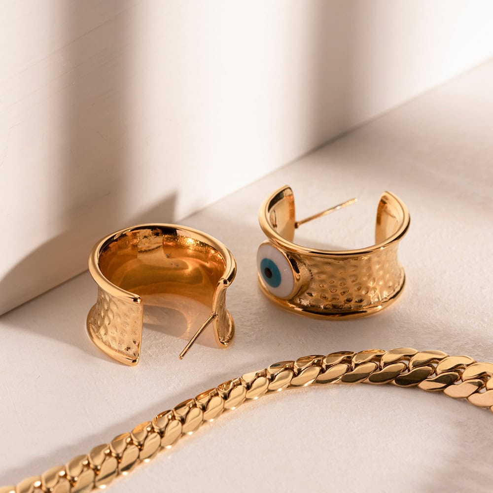 Our Devil’s Eye Hammer Grain Earrings aren’t just jewelry; they’re a statement. The durable 18K gold plating ensures they remain as vibrant as the first day, while their waterproof and anti-scratch properties make them suitable for all life’s adventures. Ideal for gifting or adding a glamorous touch to your wardrobe, these earrings promise to keep you stylish and sophisticated.