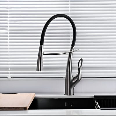 This faucet stands out not only for its elegant design but also for its functionality. Whether you’re preparing meals, cleaning up, or simply refreshing your space, its ergonomic and retractable design simplifies your daily routines. The magnetic suction ensures the sprayer stays neatly in place, maintaining a polished appearance in your kitchen. Its smooth lever control allows for precise temperature and water flow adjustments with a single touch.